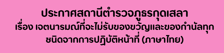 เผยแพร่ ประกาศนโยบายไม่รับของขวัญและของกำนัลทุกชนิด ณ จุดบริการประชาชน